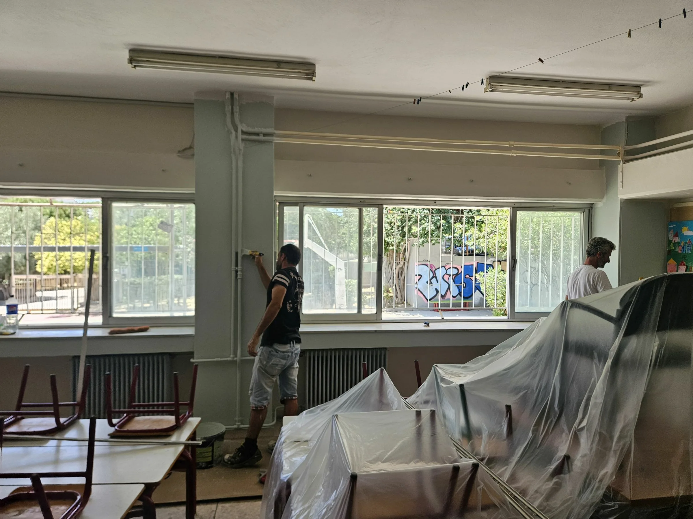 Αυτό το διάστημα γίνονται επισκευές στους εσωτερικούς και εξωτερικούς χώρους των κτιρίων του 9ου Δημοτικού, οι οποίες θα ολοκληρωθούν με το βάψιμο του σχολείου. Παράλληλα, προχωρά ριζική ανακαίνιση στις τουαλέτες του για παιδιά και εκπαιδευτικούς.