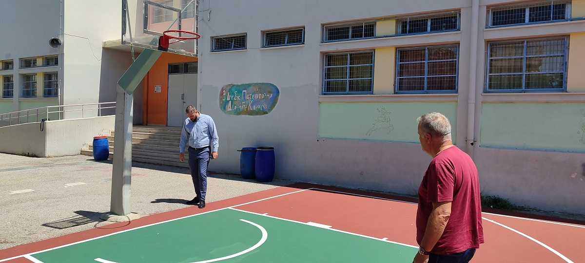 Ο Δήμαρχος Πετρούπολης Βαγγέλης Σίμος και ο Αντιδήμαρχος Πολιτισμού, Αθλητισμού & Νεολαίας Γιάννης Κουγέας επισκέφτηκαν στις 10/7 σχολεία της πόλης και έκαναν αυτοψία στους προαύλιους χώρους που έχουν ολοκληρωθεί οι εργασίες ανάπλασης και εξωραϊσμού.