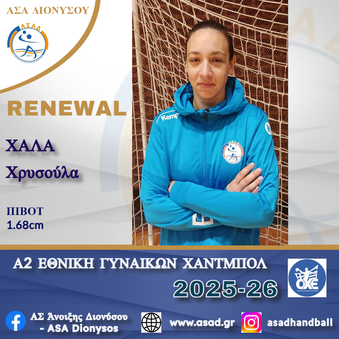 Στο πλαίσιο αυτό, την παρουσία τους στο ρόστερ του ΑΣΑΔ ανανεώνουν δύο σημαντικές μονάδες: η έμπειρη πίβοτ Χρυσούλα Χάλα και η νεαρή εξτρέμ Ασημίνα Φλαμπούρη, η οποία αποτελεί “παιδί” των ακαδημιών του συλλόγου.