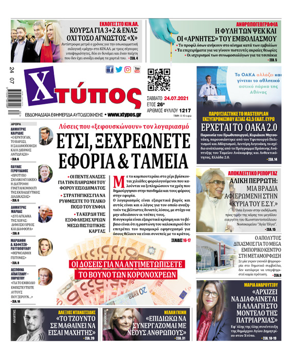 Πρωτοσέλιδο εφημερίδας «ΧΤΥΠΟΣ» Σάββατο 24 Ιουλίου 2021”