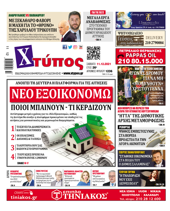Πρωτοσέλιδο εφημερίδας «ΧΤΥΠΟΣ» Σάββατο 11 Δεκεμβρίου 2021”