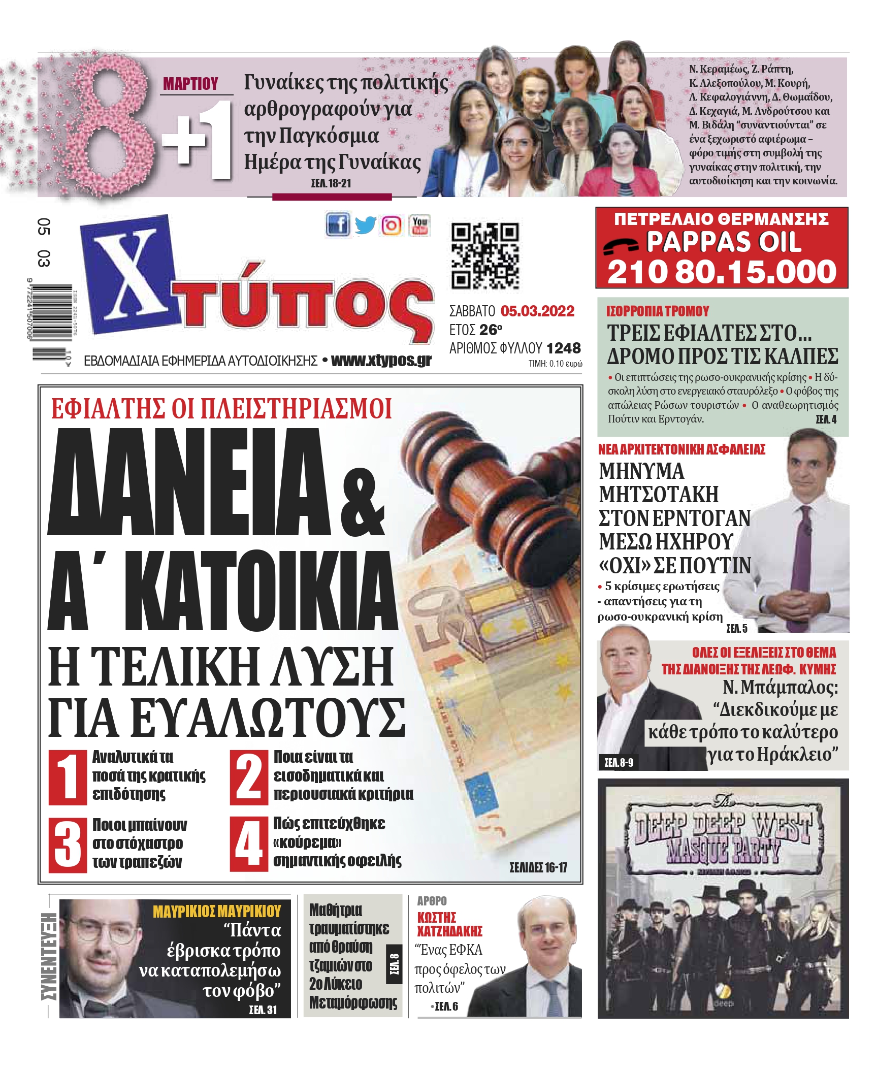 “Πρωτοσέλιδο εφημερίδας «ΧΤΥΠΟΣ» Σάββατο 5 Μαρτίου 2022”