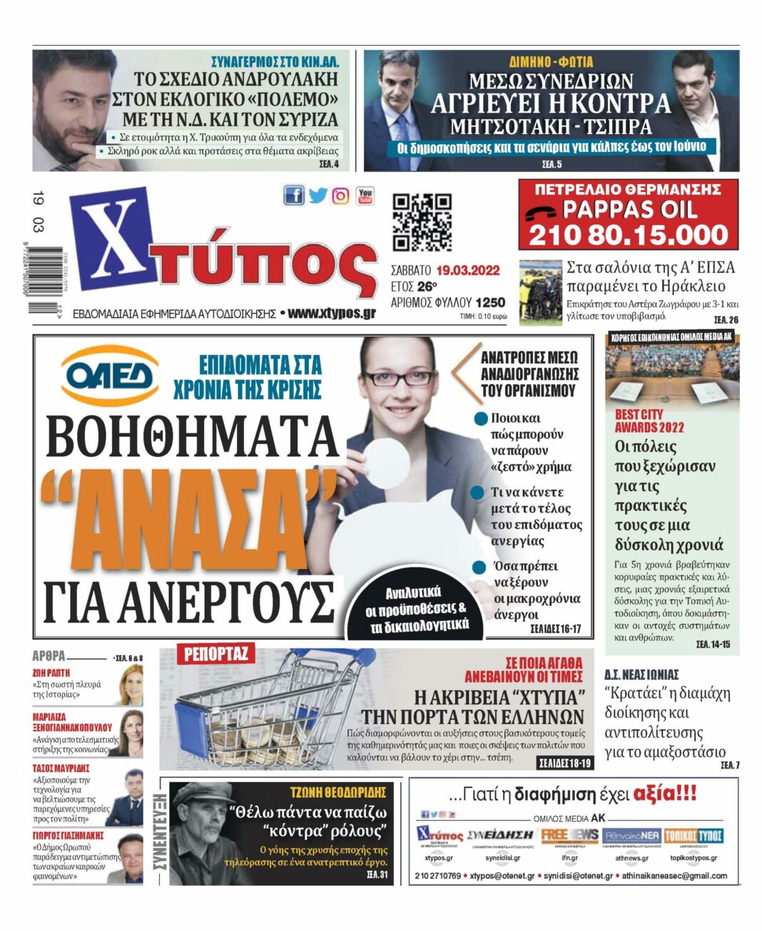 “Πρωτοσέλιδο εφημερίδας «ΧΤΥΠΟΣ» Σάββατο 19 Μαρτίου 2022”