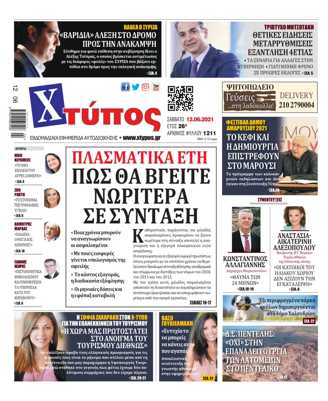 Πρωτοσέλιδο εφημερίδας «ΧΤΥΠΟΣ» Σάββατο 12 Ιουνίου 2021”