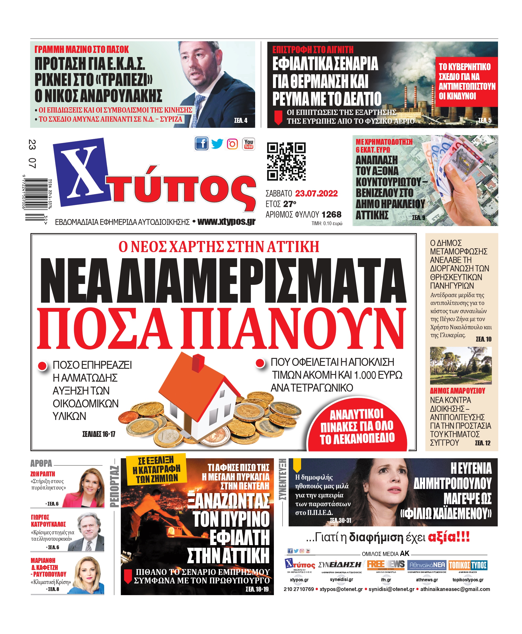 “Πρωτοσέλιδο εφημερίδας «ΧΤΥΠΟΣ» Σάββατο 23 Ιουλίου 2022”