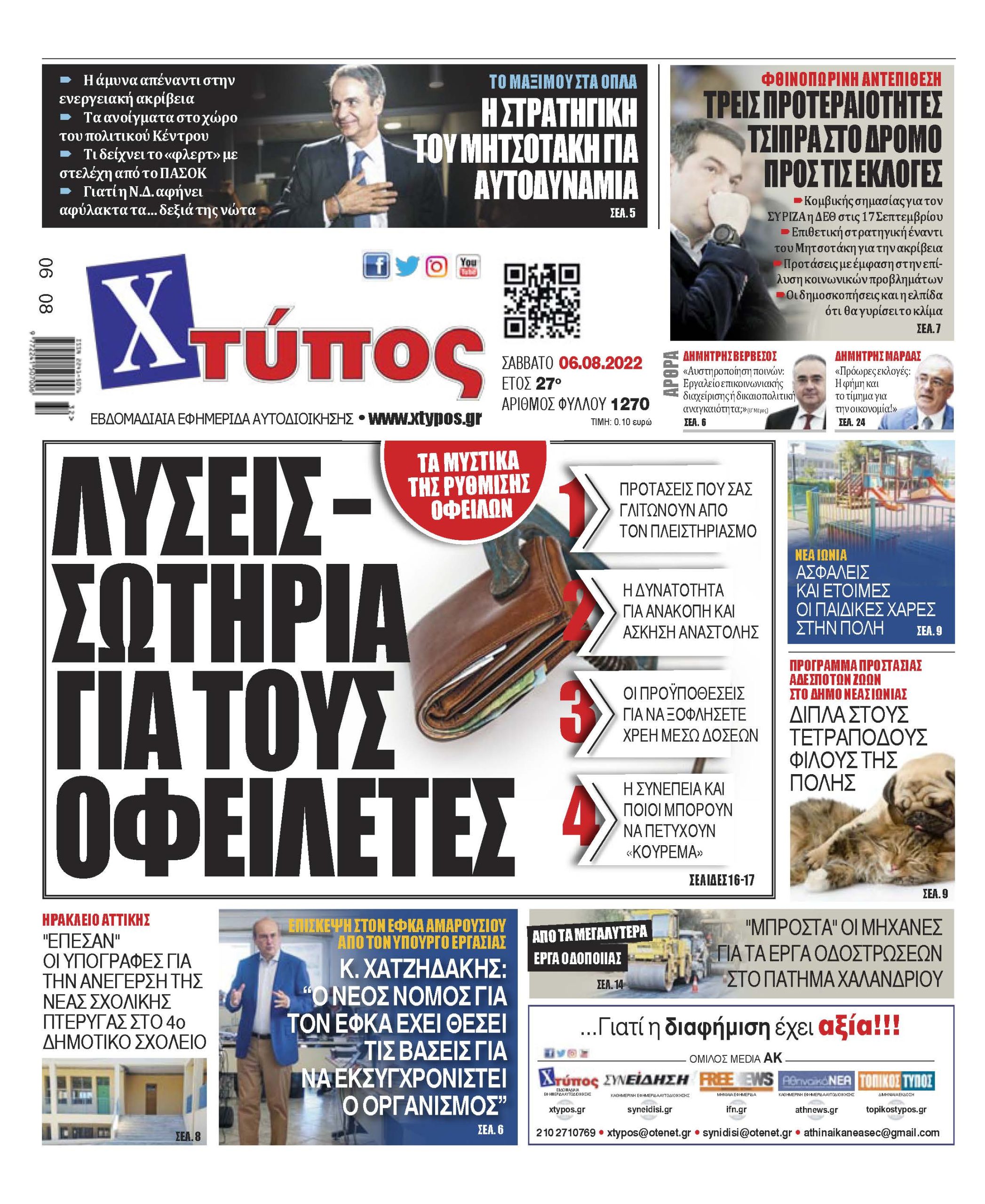 “Πρωτοσέλιδο εφημερίδας «ΧΤΥΠΟΣ» Σάββατο 6 Αυγούστου 2022”
