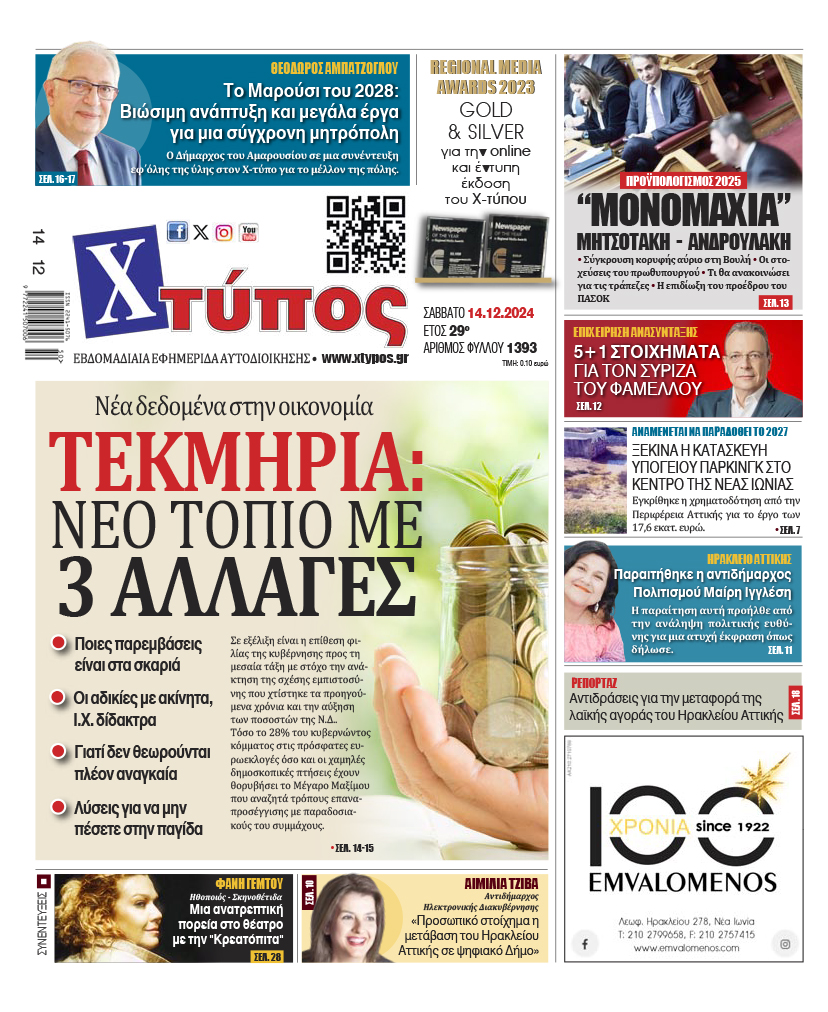 - Κατεβάστε το ηλεκτρονικό φύλλο: Ηλεκτρονική έκδοση εφημερίδας Χτύπος, Φύλλο 1393, 12/13/2024