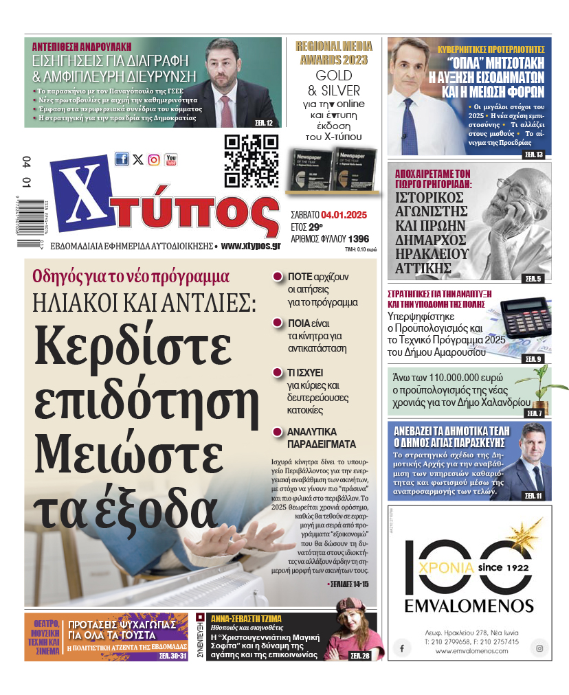 “Πρωτοσέλιδο της εφημερίδας «ΧΤΥΠΟΣ» Σάββατο 4 Ιανουαρίου 2025”