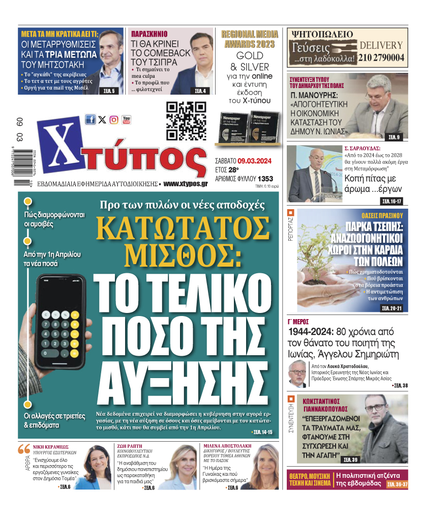 “Πρωτοσέλιδο της εφημερίδας «ΧΤΥΠΟΣ» Σάββατο 15 Μαρτίου 2025”
