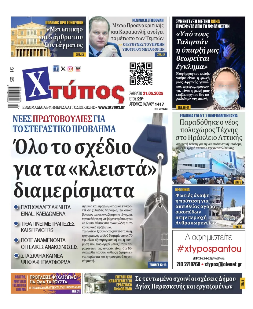 “Πρωτοσέλιδο της εφημερίδας «ΧΤΥΠΟΣ» Σάββατο 31 Μαΐου 2025”