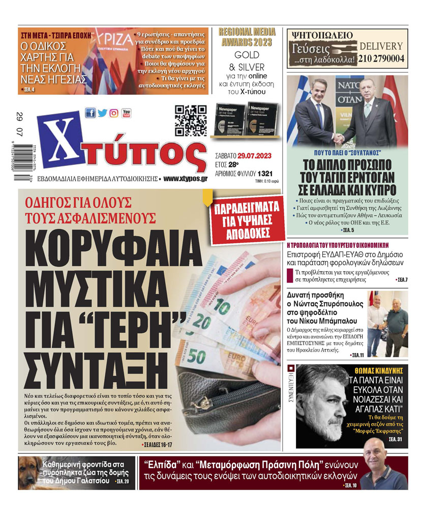 “Πρωτοσέλιδο της εφημερίδας «ΧΤΥΠΟΣ» Σάββατο 29 Ιουλίου 2023”