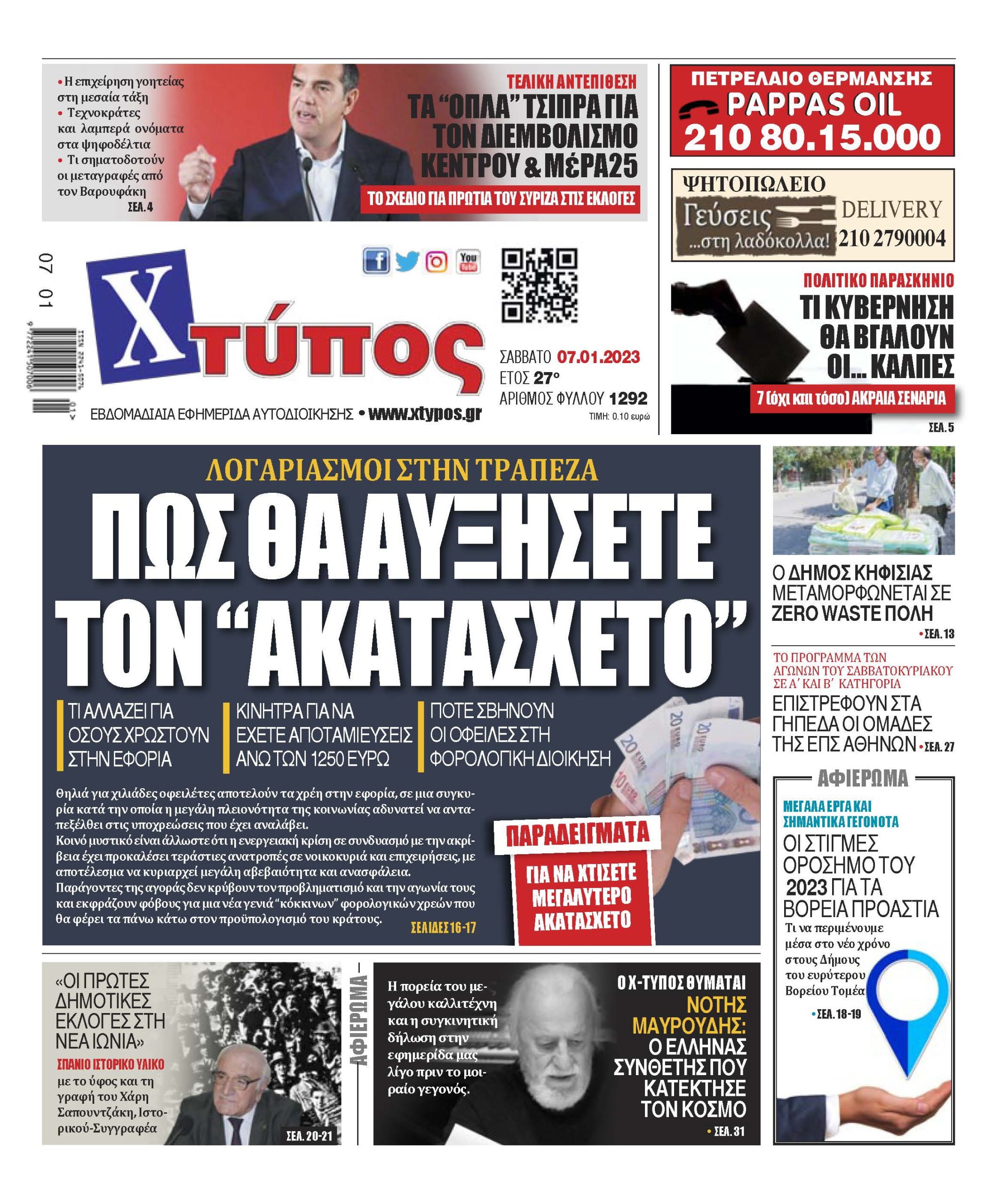 “Πρωτοσέλιδο της εφημερίδας «ΧΤΥΠΟΣ» Σάββατο 7 Ιανουαρίου 2023”