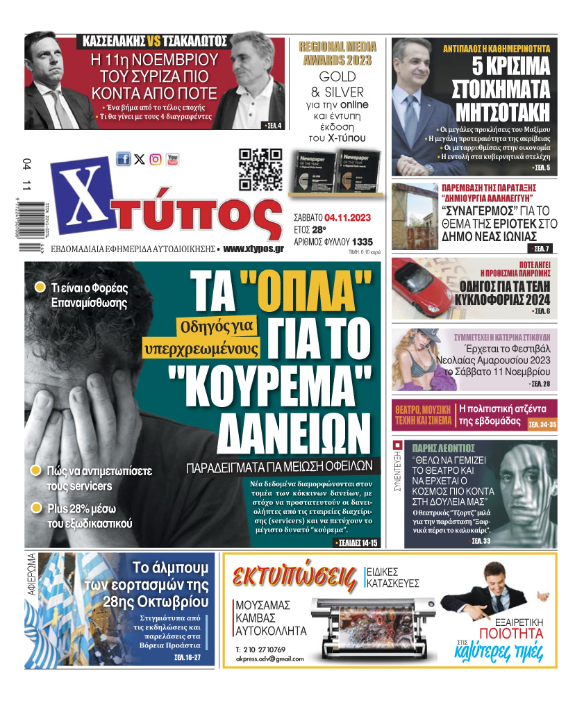 “Πρωτοσέλιδο της εφημερίδας «ΧΤΥΠΟΣ» Σάββατο 4 Νοεμβρίου 2023”