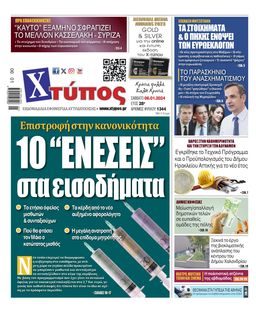 “Πρωτοσέλιδο της εφημερίδας «ΧΤΥΠΟΣ» Σάββατο 06 Ιανουαρίου 2024”