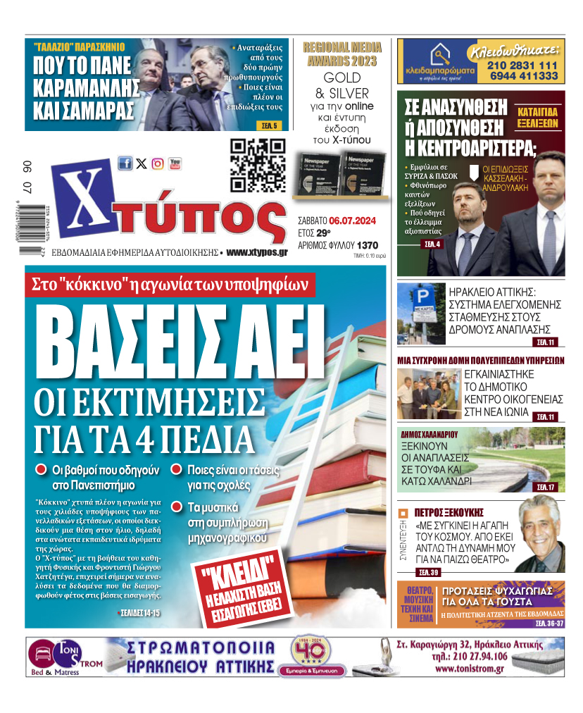 “Πρωτοσέλιδο της εφημερίδας «ΧΤΥΠΟΣ» Σάββατο 6 Ιουλίου 2024”