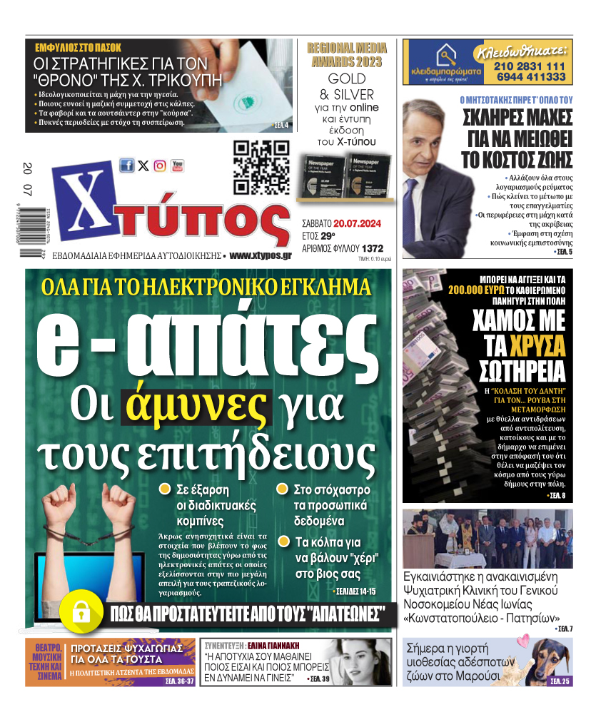 “Πρωτοσέλιδο της εφημερίδας «ΧΤΥΠΟΣ» Σάββατο 20 Ιουλίου 2024”