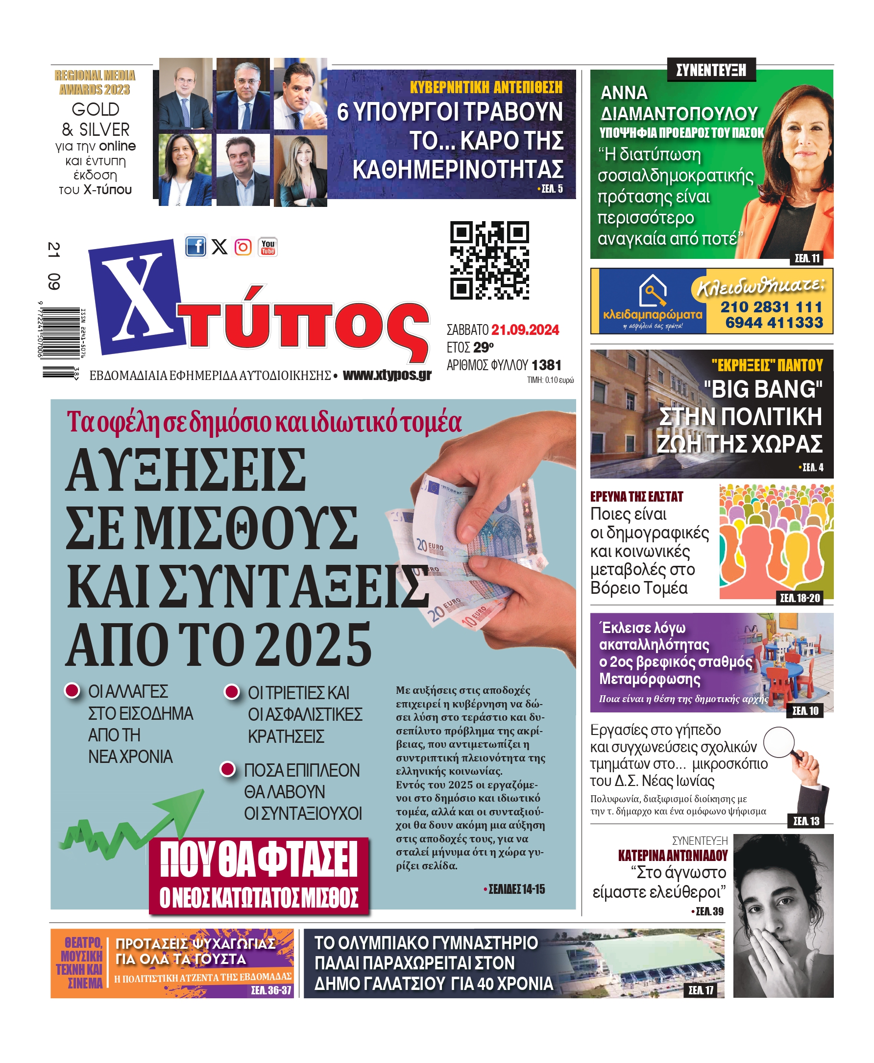 “Πρωτοσέλιδο της εφημερίδας «ΧΤΥΠΟΣ» Σάββατο 21 Σεπτεμβρίου 2024”