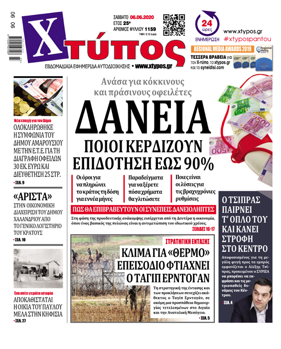 Πρωτοσέλιδο «ΧΤΥΠΟΣ» Σάββατο 06 Ιουνίου 2020