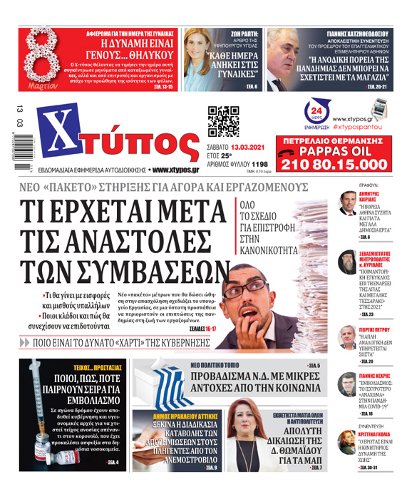 “Πρωτοσέλιδο «ΧΤΥΠΟΣ» Σάββατο 13 Μαρτίου 2021”