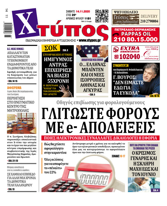 - Κατεβάστε το ηλεκτρονικό φύλλο: Ηλεκτρονική έκδοση εφημερίδας Χτύπος, Φύλλο 1181, 11/12/2020