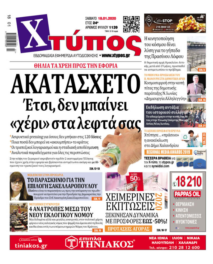 - Κατεβάστε το ηλεκτρονικό φύλλο: Ηλεκτρονική έκδοση εφημερίδας Χτύπος, Φύλλο 1139, 1/17/2020