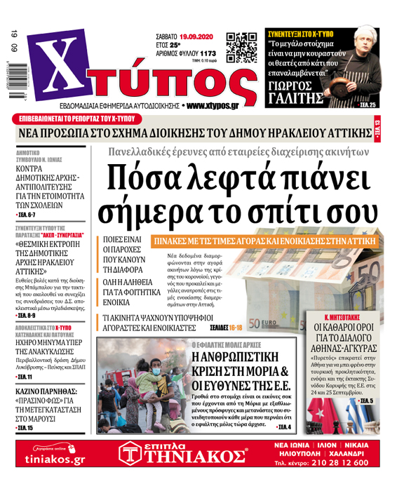 - Κατεβάστε το ηλεκτρονικό φύλλο: Ηλεκτρονική έκδοση εφημερίδας Χτύπος, Φύλλο 1173, 9/18/2020