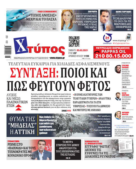 “Πρωτοσέλιδο «ΧΤΥΠΟΣ» Σάββατο 20 Φεβρουαρίου 2021”