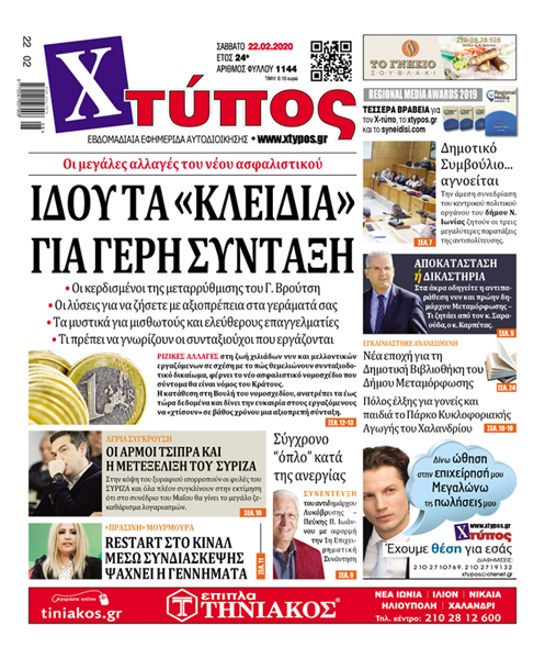 Πρωτοσέλιδο «ΧΤΥΠΟΣ» Σάββατο 22 Φεβρουαρίου 2020