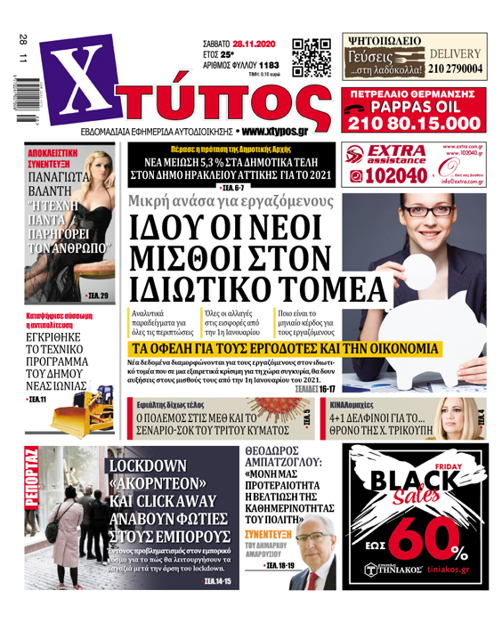 “Πρωτοσέλιδο «ΧΤΥΠΟΣ» Σάββατο 28 Νοεμβρίου 2020”