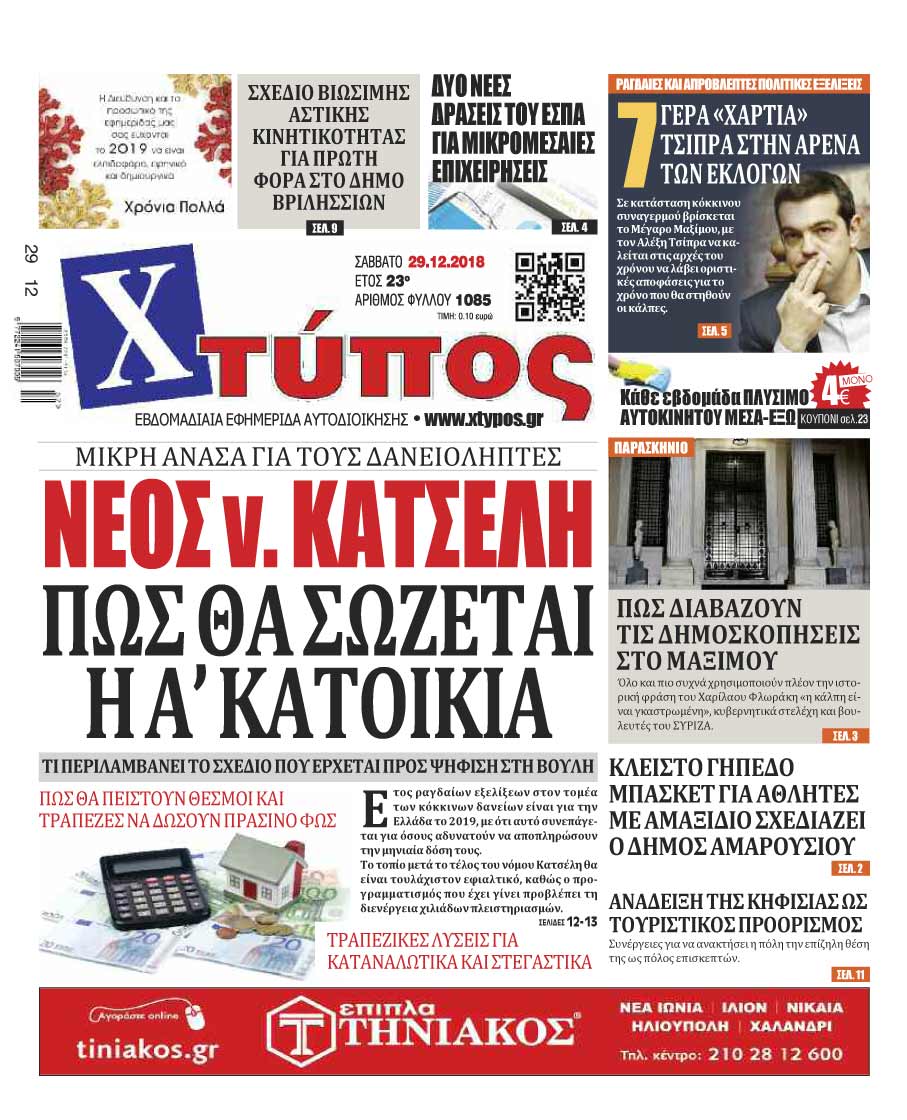 - Κατεβάστε το ηλεκτρονικό φύλλο: Ηλεκτρονική έκδοση εφημερίδας Χτύπος, Φύλλο 1085, 12/28/2018