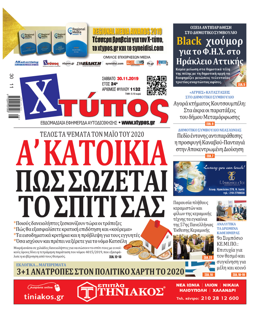- Κατεβάστε το ηλεκτρονικό φύλλο: Ηλεκτρονική έκδοση εφημερίδας Χτύπος, Φύλλο 1132, 11/29/2019