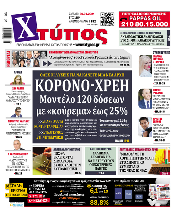 “Πρωτοσέλιδο «ΧΤΥΠΟΣ» Σάββατο 30 Ιανουαρίου 2021”