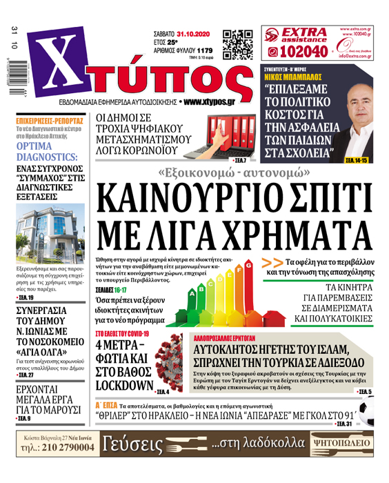 “Πρωτοσέλιδο «ΧΤΥΠΟΣ» Σάββατο 31 Οκτωβρίου 2020”
