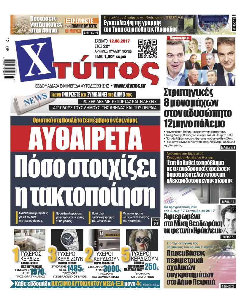 Πρωτοσέλιδο Χτύπος 12-8-2017